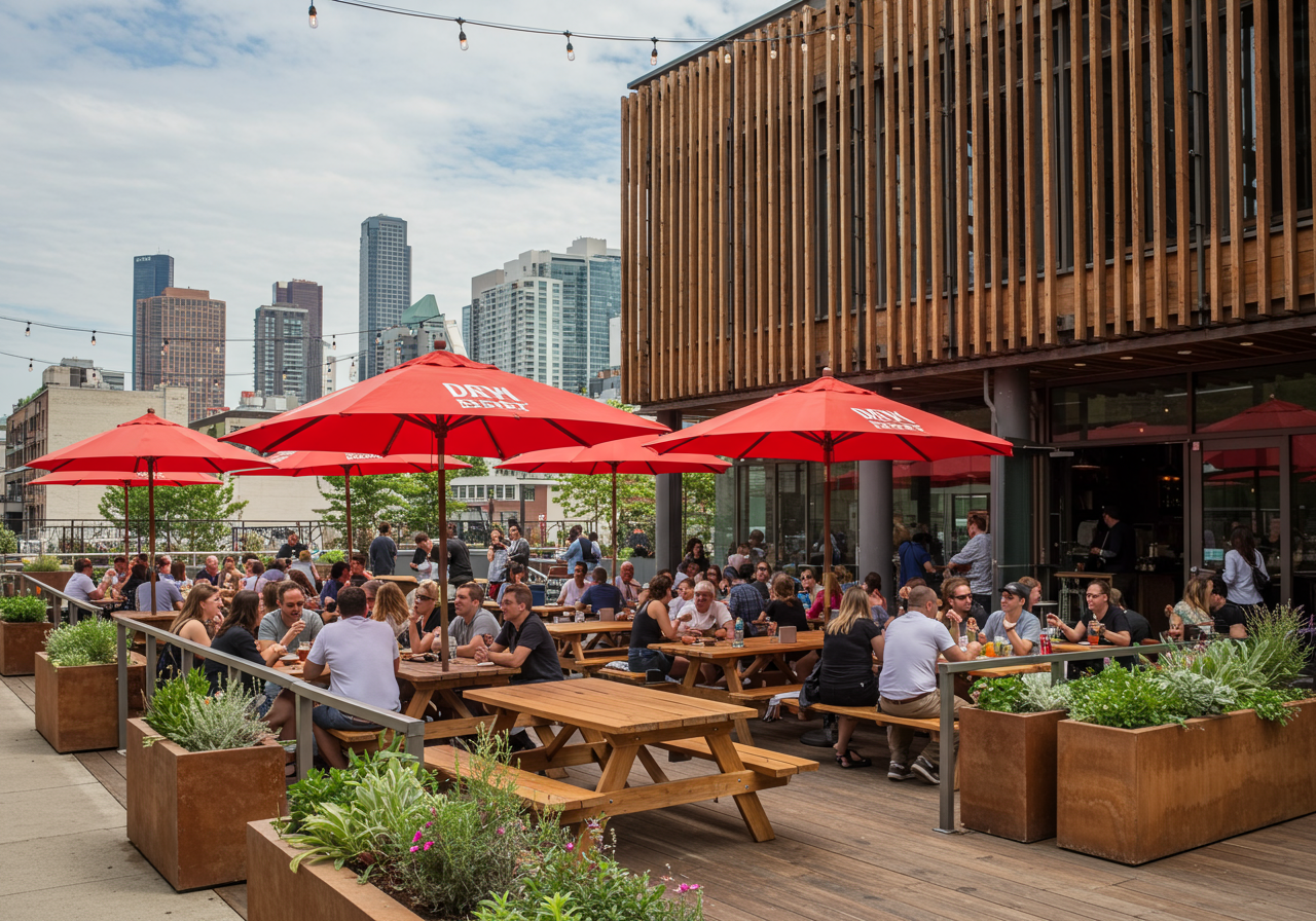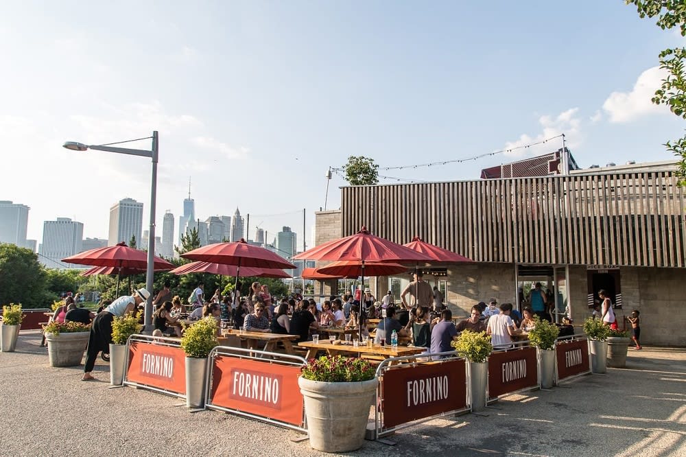 Cocktails and wood-fired pizza on a rooftop are what you will find at Fornino Pier 6, a pizza restaurant in Brooklyn Bridge Park. You will enjoy a laid-back atmosphere with a lively crowd during the warmer months of the year. Since all of the seating is outdoors, it is not typically open during the frigid wintertime. This is a fun place to meet up with friends and order a few different pizzas to share while watching a volleyball game. The sangria is made with seasonal fruits and is perfect for both white and red wine lovers. Salads, sandwiches, and a few appetizers are also available. The deck gets very crowded during the height of the summer months, so you may want to consider making reservations.