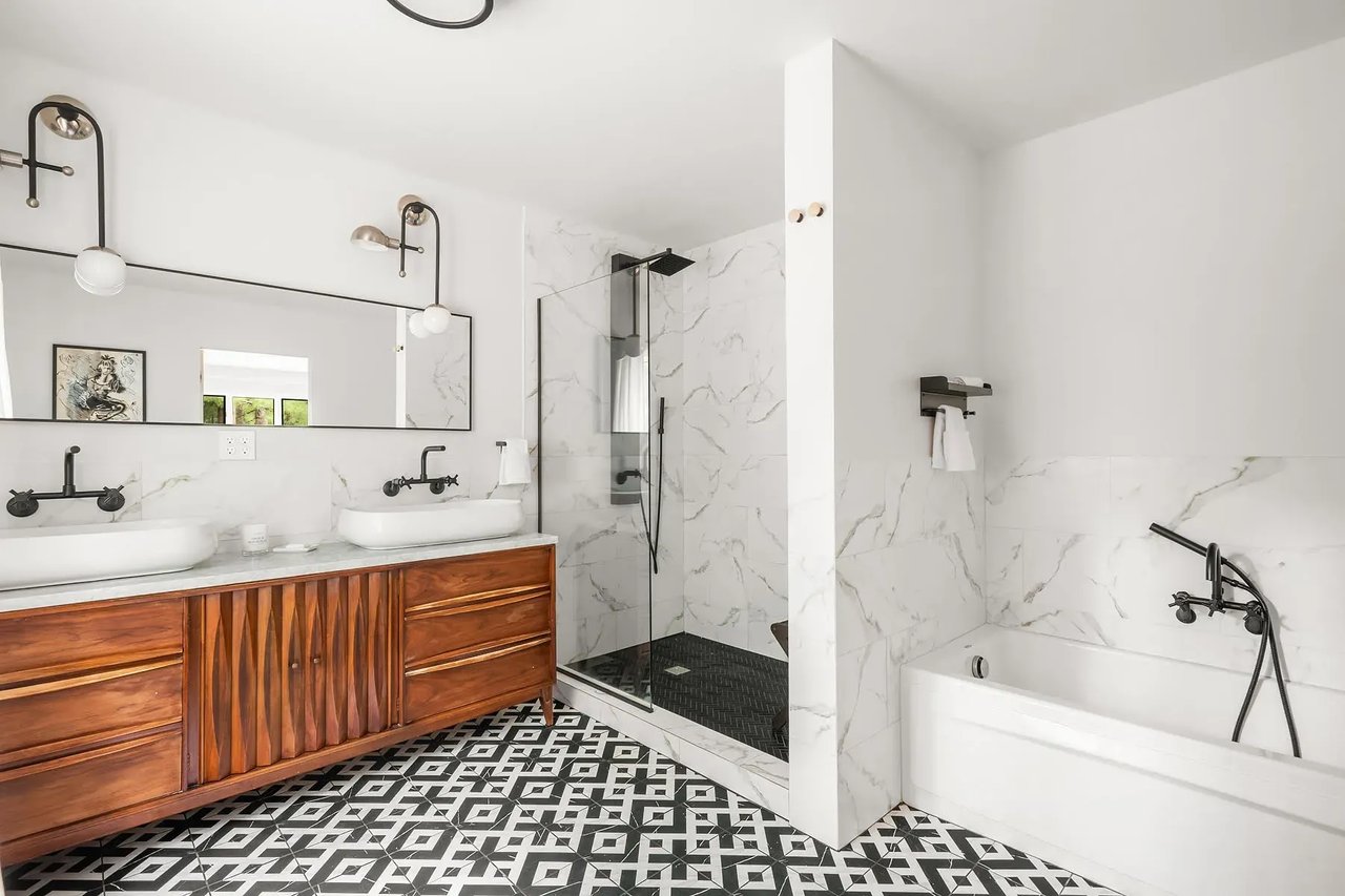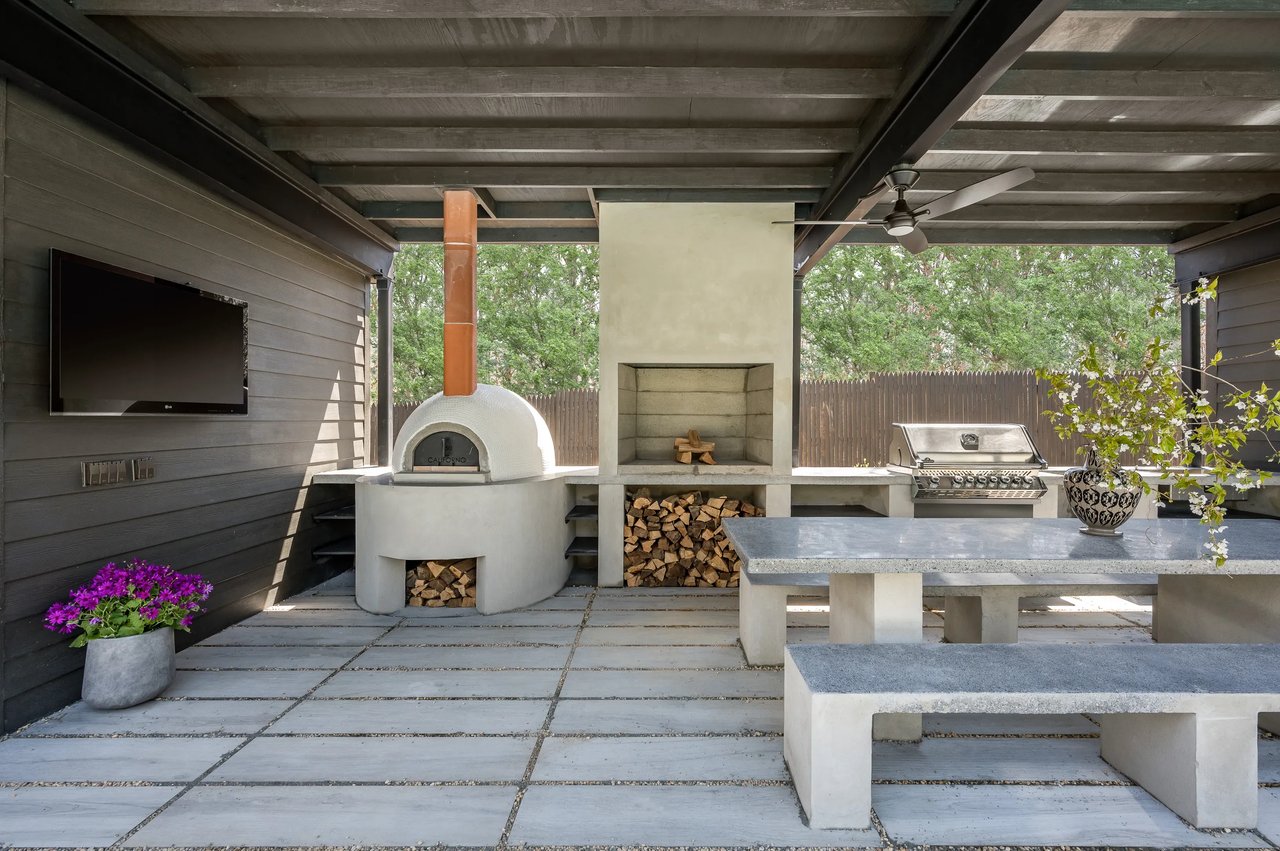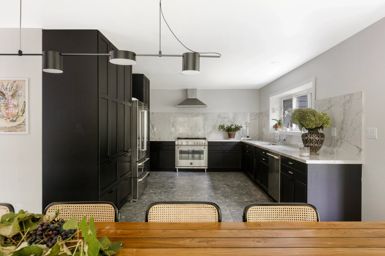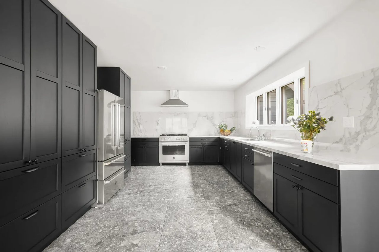 The kitchen is fully equipped with Bertazzoni Stainless steel appliances, sleek cabinetry, and gorgeous countertops/backsplash